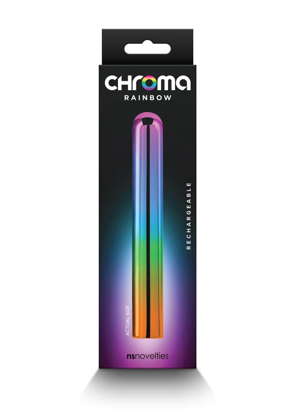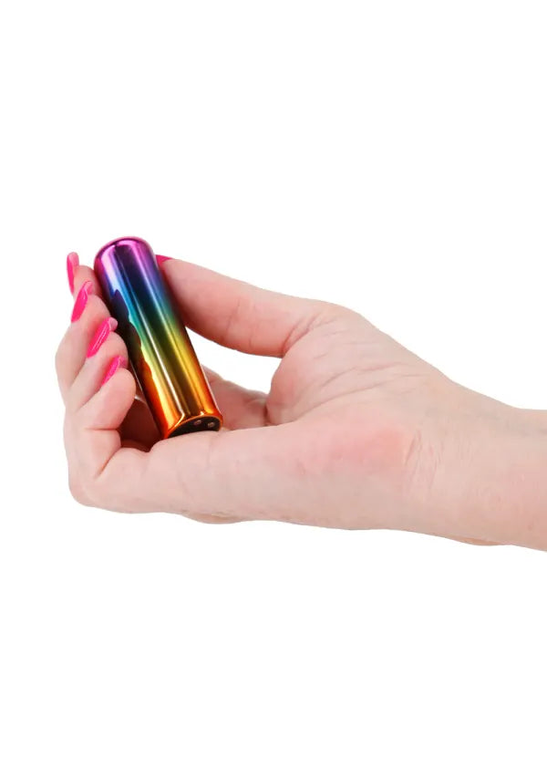 The Chroma Rainbow Rechargeable Mini Bullet is also suitable for those who prefer to travel with their sex toys. The product dimensions are 2.68 x 0.75 x 0.75 inches (6,8 x 1,9 x 1,9 cm), and its insertable size is 2.01 x 0.75 inches (5,1 x 1,9 cm).