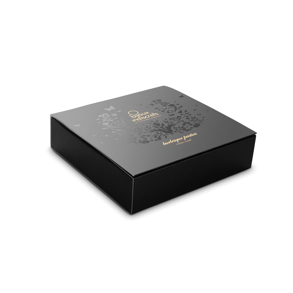 Transform yourself into a character of pure exuberance with Bijoux Indiscrets Burlesque Pasties. Leather and satin nipple covers.