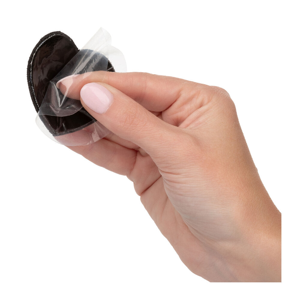 Wrap your goodies in glamour with the ravishing Radiance Heart Pasties. These reusable pasties are party ready with sparkling gem accents, an easy-peel and stick adhesive tape, and a form-fitting design. The form-fitting design and self-adhesive tape are made for extended playtime and can stay in place no matter how much your shake and shimmy. The glamorous nipple pasties are the perfect addition to any wild music festival look, rave outfit, Pride fit, or as luscious lingerie. Easy Application, Thoroughly clean and dry desired location, peel and stick adhesive tape, and press firmly in place to ensure long-lasting wear. For best results, avoid using lotion or oil on location prior to use and apply any makeupjewelsglitter after applying pasties.