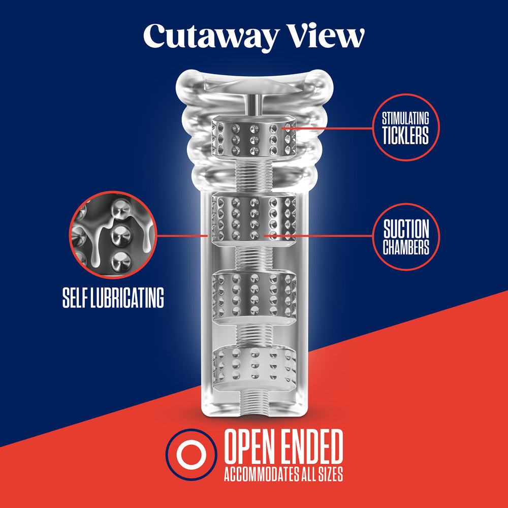 The RIZE! Luz is loaded with fun! This stroker is self-lubricating, just add a little water or saliva, and everything gets slippery. It also glows blue in the dark to add some excitement to your night! The Luz has soft ticklers for the ultimate feel and a ribbed inside for pressure point massage. Multiple chambers of suction create pleasurable stroking sensations. Super-soft and flexible, the Luz will fit any size shaft. It is free of phthalates, fragrances, paraffins, and latex. Self-lubricating. Add water or saliva, slippery when wet. Glows in the dark. Soft erotic feel and open-ended. Multi-chambered and textured. Snug for extra pleasure. Internal ticklers and chambers of suction. Squeezable. Contains no phthalates, paraffins, or latex. Length 6 inches, 15,2 cm Width 2.5 inches, 6,3 cm Open-ended to fit all sizes