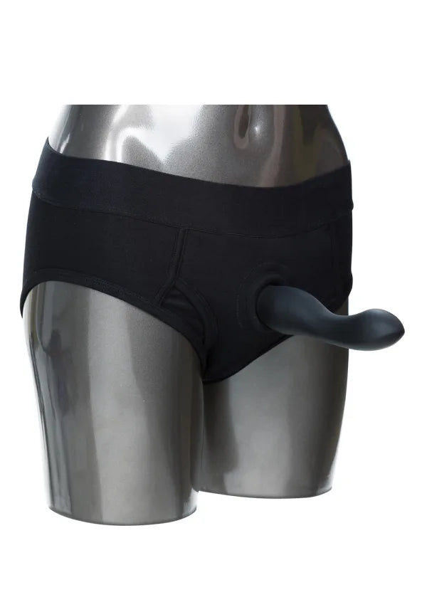 Black brief harness, add your own dong or stimulator Discreet 2 panel design to accommodate dual penetration Reinforced O ring stretches to accommodate most packers, dongs or probes Soft, stretchy and comfortable Comfortable soft lining Internal strap to secure your packer in place, packer not included Internal pockets to add a favourite stimulator, not included Washable 95 percent Cotton, 5 percent Spandex For Women.