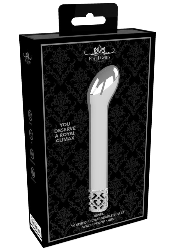You don���t need to be royalty to enjoy this elegant line. The sleek metal finish makes this vibrator the crown jewel of any collection. The curved tip on the JEWEL is perfect for internal or external pleasures.